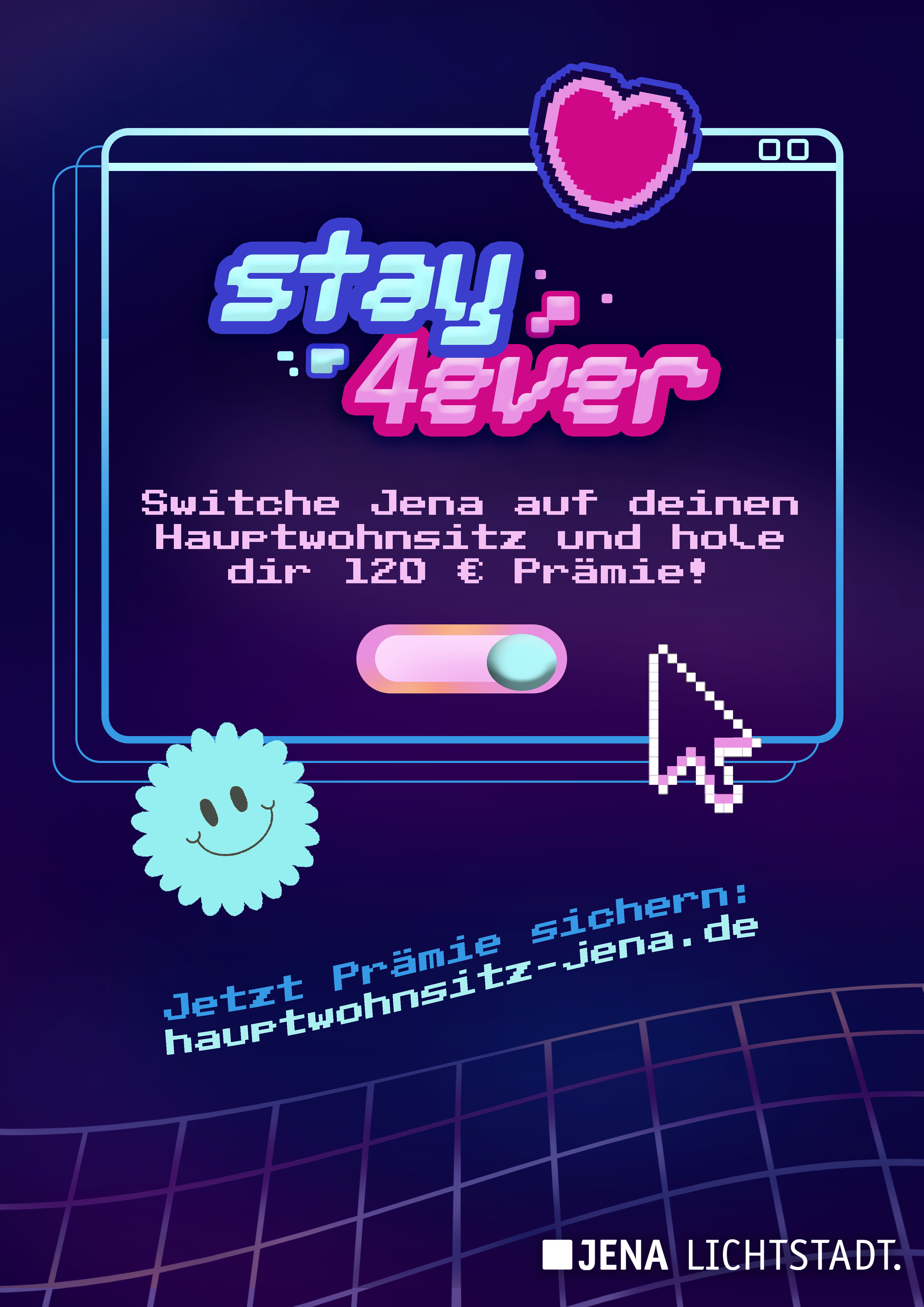 In diesem Jahr stand die HWK 25 in Jena ganz im Zeichen des Retro-Themas „Stay4ever“. Unter der Leitung von Amanda Becker, Kevin Michalak und Sina Lindemann wurden Studierende und Auszubildende der HWK kreativ in Szene gesetzt, um die Stadt Jena als attraktiven Wohnort zu präsentieren.